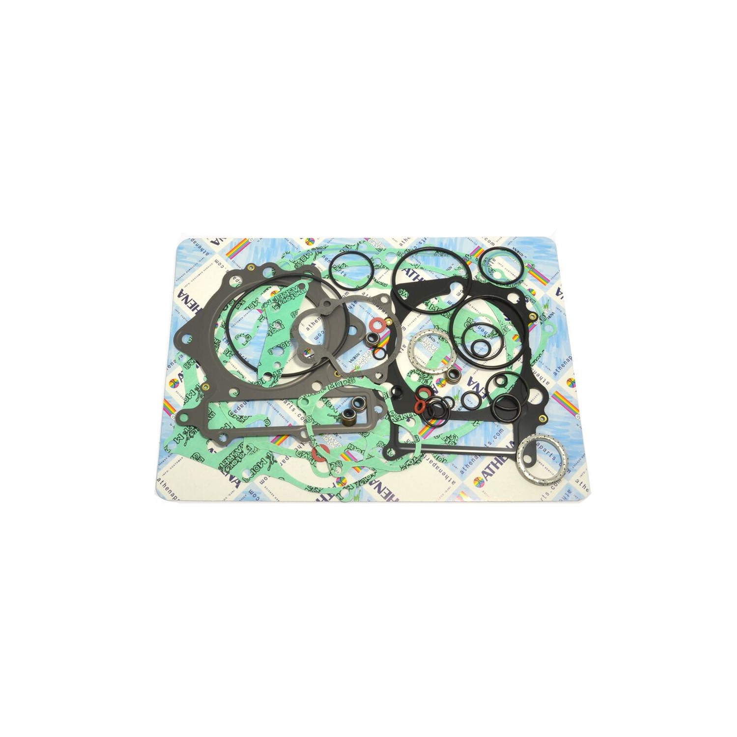 Kit guarnizioni completoKit guarnizioni di qualità superiore di Athena S.p.A.. Le guarnizioni testa sono in acciaio per molle con rivestimento in gomma Le guarnizioni base sono realizzate in acciaio dolce con rivestimento in gomma I materiali di base in acciaio si contraddistinguono per un ritorno elastico elevato e una resistenza alla tensione superiore Rivoluzionario rivestimento trasparente che garantisce una tenuta perfetta anche a temperature estreme Sulla maggior parte delle guarnizioni piatte è presente una bordatura in silicone blu resistente alle alte temperature I kit di guarnizioni completi includono tutte le guarnizioni necessarie per riparare la parte superiore e inferiore del motore, includendo tutte le guarnizioni in gomma e gli o-ring, parte superiore e inferiore